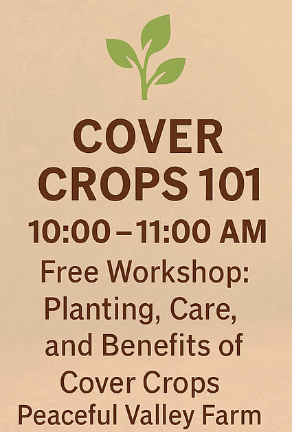 Cover crops aren’t just “green ground cover.” They’re natural problem-solvers. They help prevent erosion on our hilly landscapes, return nutrients to the soil, and keep weeds at bay. Legumes like clover and vetch fix nitrogen, while grasses and grains improve soil structure and add organic matter. This workshop will break down which mixes are best for fall planting in our region and when to crimp or cut them to get the best results.