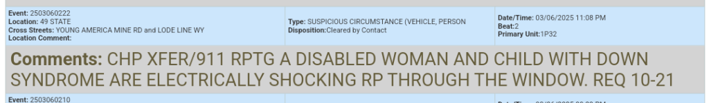 The incidents described above were sourced from the Nevada County Sheriff’s Call Logs, which are public records available here. Please note that any additional commentary reflects the author’s perspective and does not represent the views of the Nevada County Sheriff’s Office or its affiliates. This commentary aims to provide a lighthearted take on otherwise challenging situations and is not intended to harm, slander, or negatively impact anyone involved.