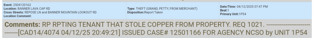 Nevada County Sheriff’s Office Call Logs