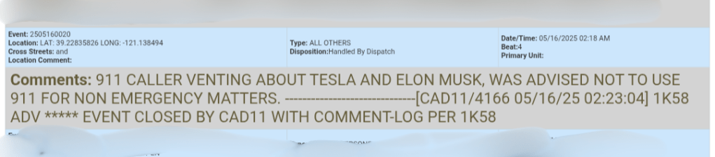 A 911 caller phoned in to vent about Elon Musk and Tesla. They were kindly advised that tech rants don’t qualify as emergencies.