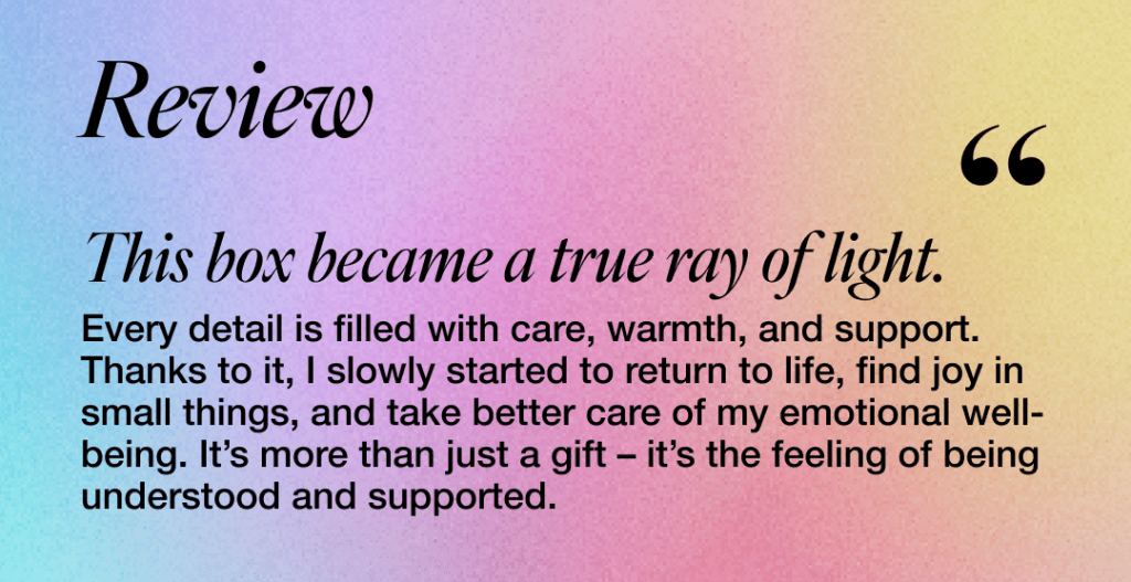 These aren’t your typical “self-care” boxes. No cucumber melon candles or “good vibes only” mugs. Just real tools, thoughtful comfort, and the kind of care that actually lands.