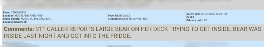 Welcome back for another whirlwind of delightfully odd calls from Nevada County. If you’re wondering what it’s like to live in a small town, wonder no more. It’s a place where bears break into your fridge (twice), internet fraud becomes a metaphysical experience, and goldfish families get left behind. It’s all real, it’s all documented, and it’s all gloriously absurd in this edition of Call Log Diaries.