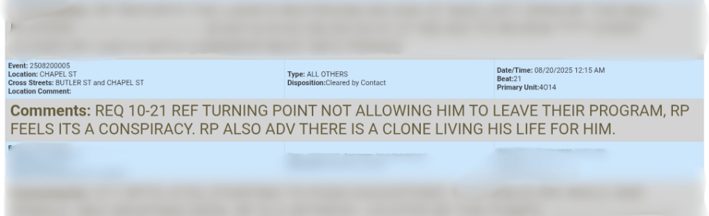 A man requested a call regarding Turning Point allegedly not letting him leave their program. He also casually mentioned that there’s a clone currently out living his life. You know, as one does.
