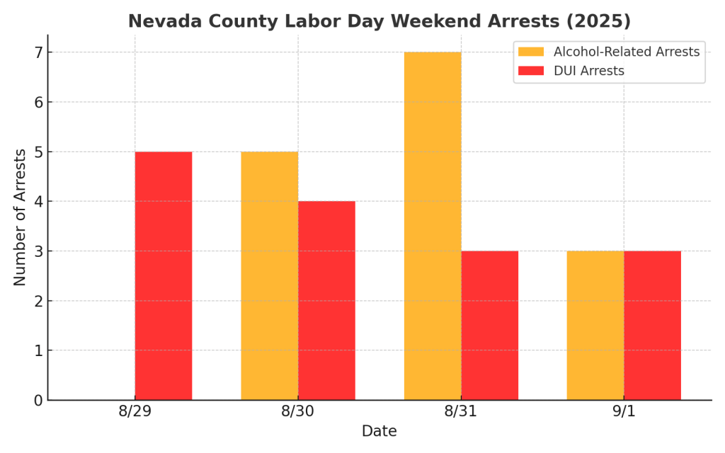 Labor Day weekend is supposed to be about BBQs, last-minute camping trips, and soaking up those golden Sierra foothill sunsets. But if you look at the Nevada County Sheriff’s jail media report from this holiday weekend, the picture isn’t quite so sunny. Once again, alcohol-related arrests and DUIs were way too common, reminding us all that celebrations can turn serious in a heartbeat when mixed with impaired driving.